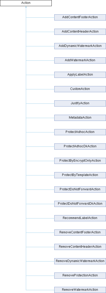 Interface for an action. Each action translates to a step that needs to be taken by the application to apply the label (as defined in the policy) More...